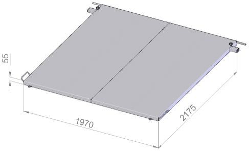 Can be raised on straight sides at the front, complete with hinges, gas struts and lock, primed finish